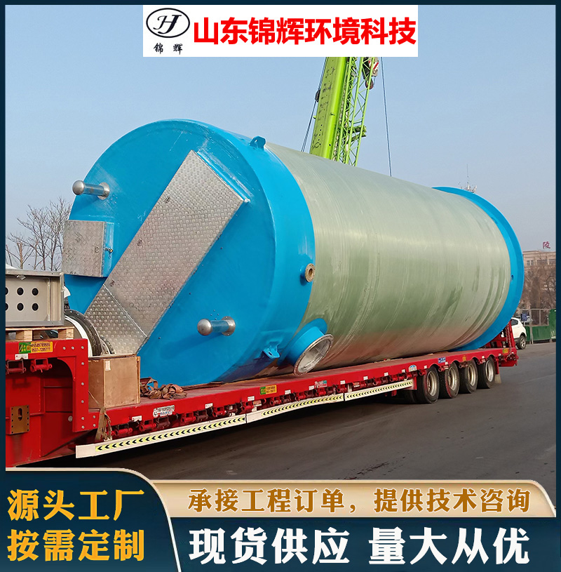 泵站筒體結構由纖維纏繞玻璃鋼(GRP)制成,采用意大利(VEM)公司設備,全自動化控制連續纏繞型,確保厚度均勻并達到設計的剛度,質量穩定優良 。