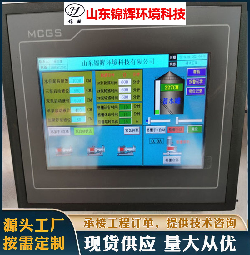 控制箱體材質為不銹鋼,戶外雙層門防雨型, 下進下出線,柜內采用知名品牌的元器件正泰、施耐德、ABB、西門子或同等以上品牌。系統結構圖形直觀顯示,可從系統圖中直接顯示出各水泵運行故障情況,泵站液位可讀出系統的液位值運行信息和故障、液位超高等短信提醒功能.