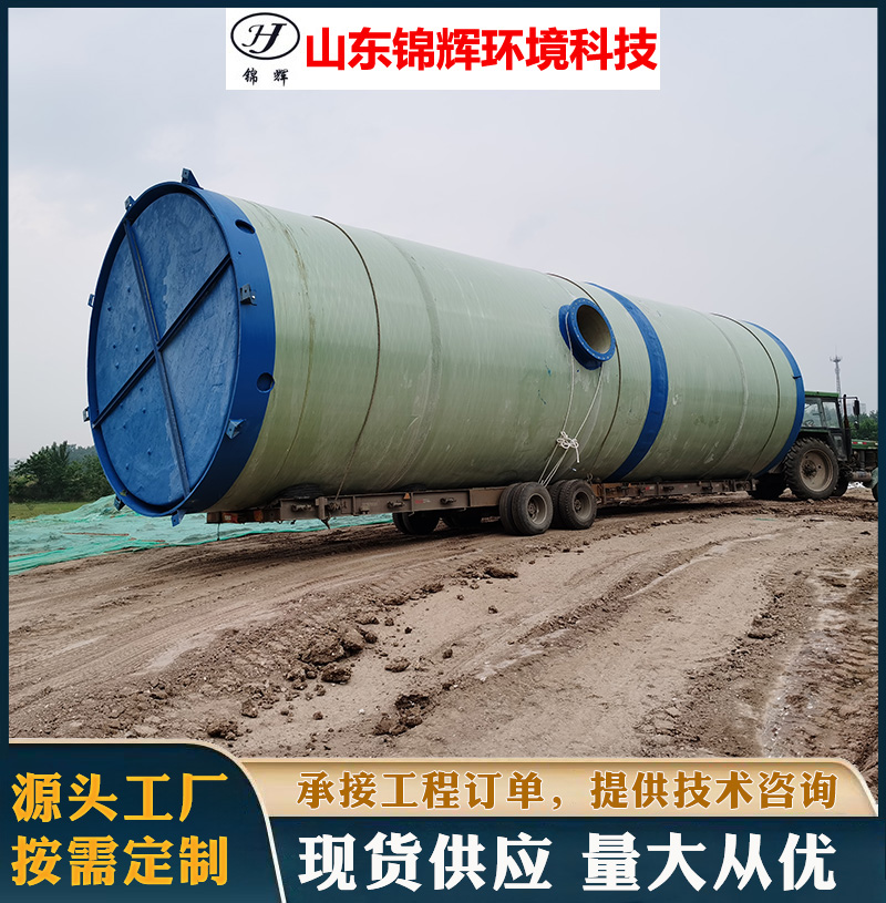 泵站筒體結構由纖維纏繞玻璃鋼(GRP)制成,采用意大利(VEM)公司設備,全自動化控制連續纏繞型,確保厚度均勻并達到設計的剛度,質量穩定優良 。